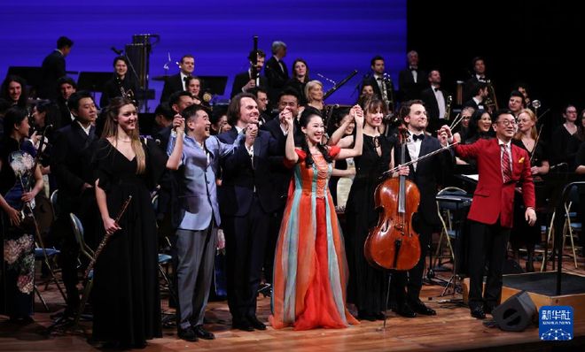 2024年1月31日,在法国巴黎凡尔赛宫皇家歌剧院举行的庆祝中法建交60周年暨中法文化旅游年开幕音乐会上,全体演员向观众致意。新华社记者 高静/摄